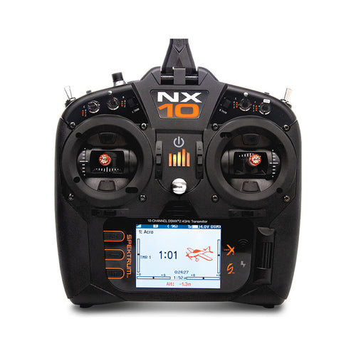 The Spektrum™ NX10 10-channel DSMX® transmitter gives intermediate to advanced pilots a new opportunity to explore the advantages of truly innovative radio control. This radio includes an incredible array of exclusive technologies and advanced connectivity features that are found in no other 10-channel transmitters.